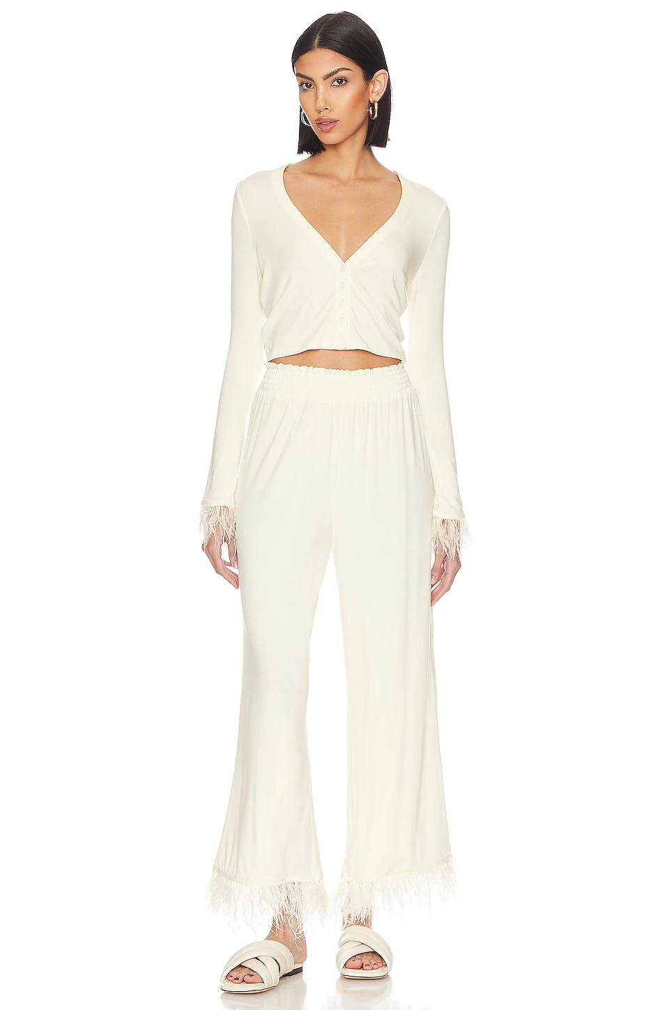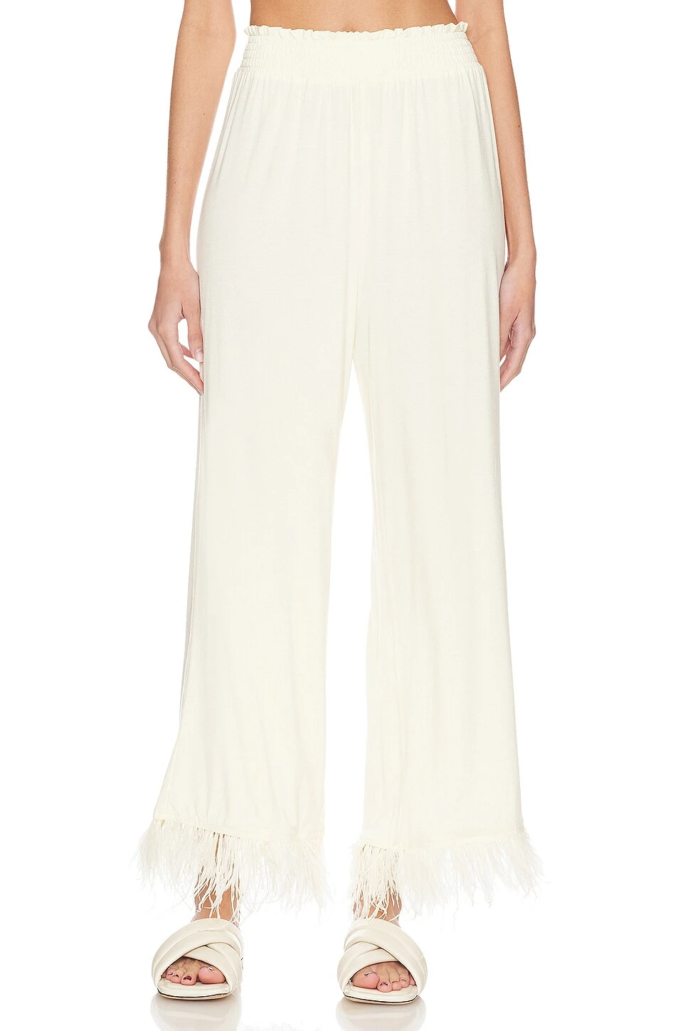 Feather Pull On Pant Ecru & Ecru Feathers