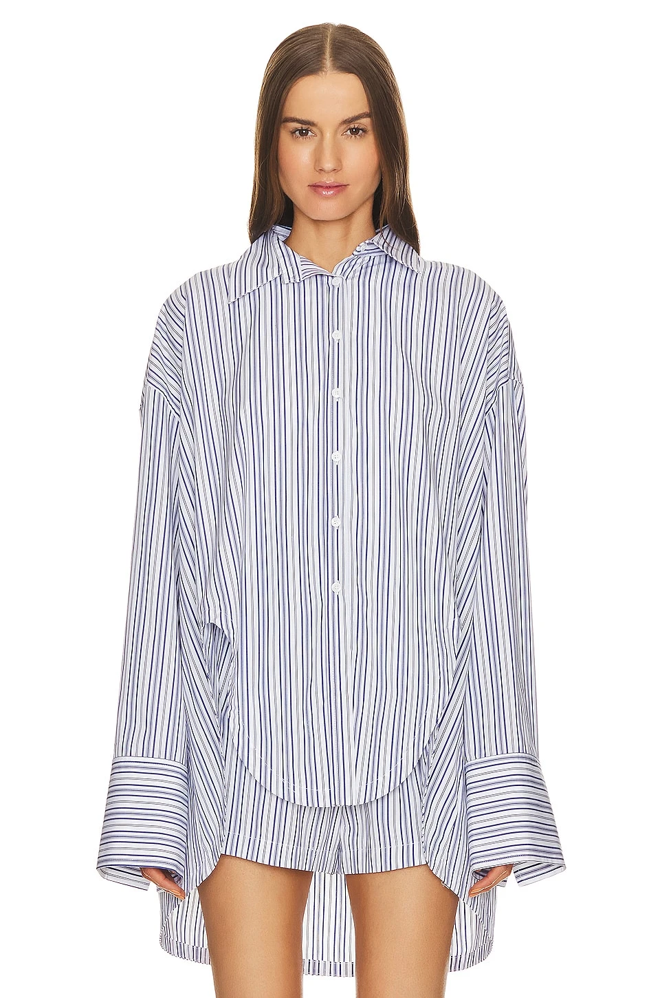 - Lightweight poplin fabric with curved hem