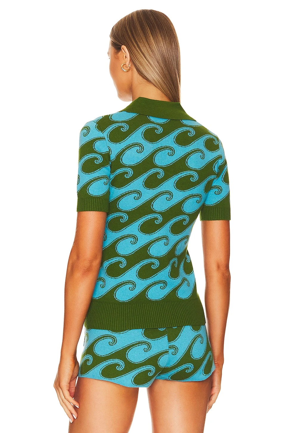 Peachskin Short Sleeve Polo Aqua & Palm Waves