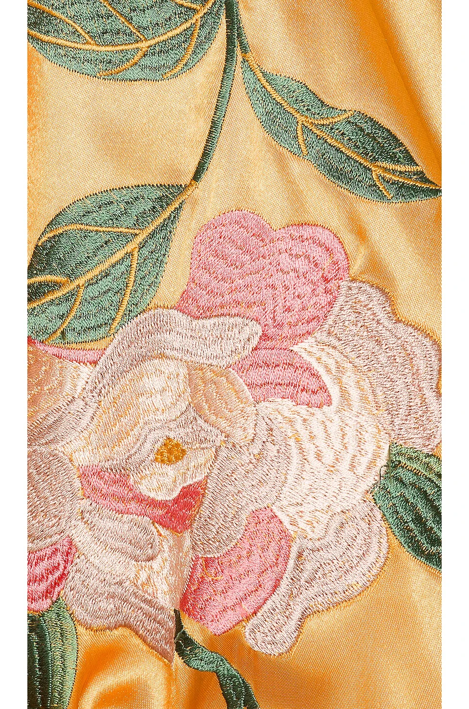 Bell sleeves - Sheen satin fabric with embroidered floral design throughout