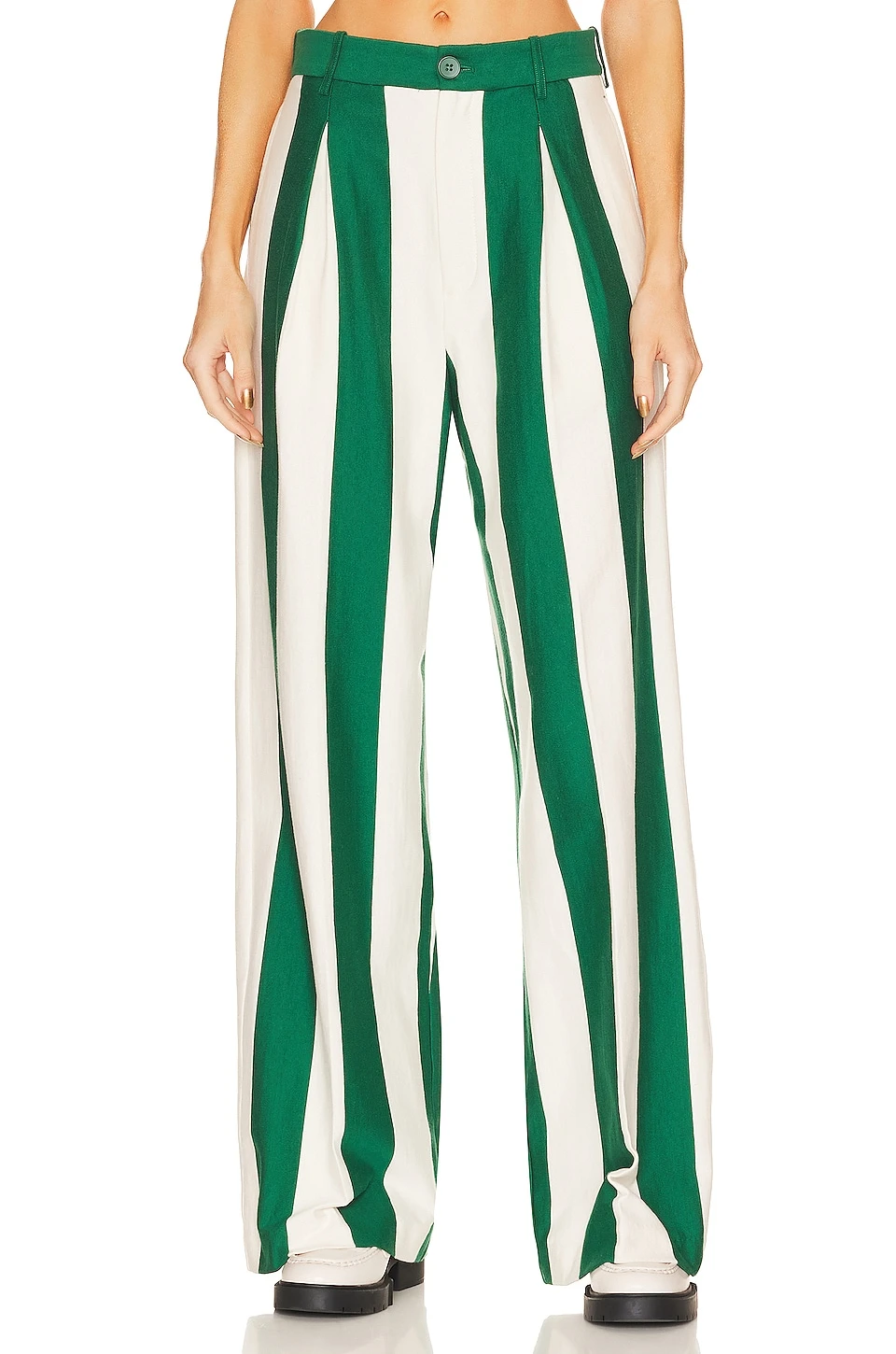 Rugby Pleated Pant Green & Ivory Stripe