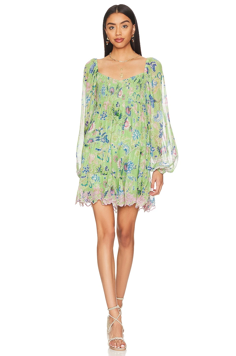 Flowy chiffon fabric with gold-tone metallic threading throughout and ruffle hem - Revolve Style No. BENE-WD259