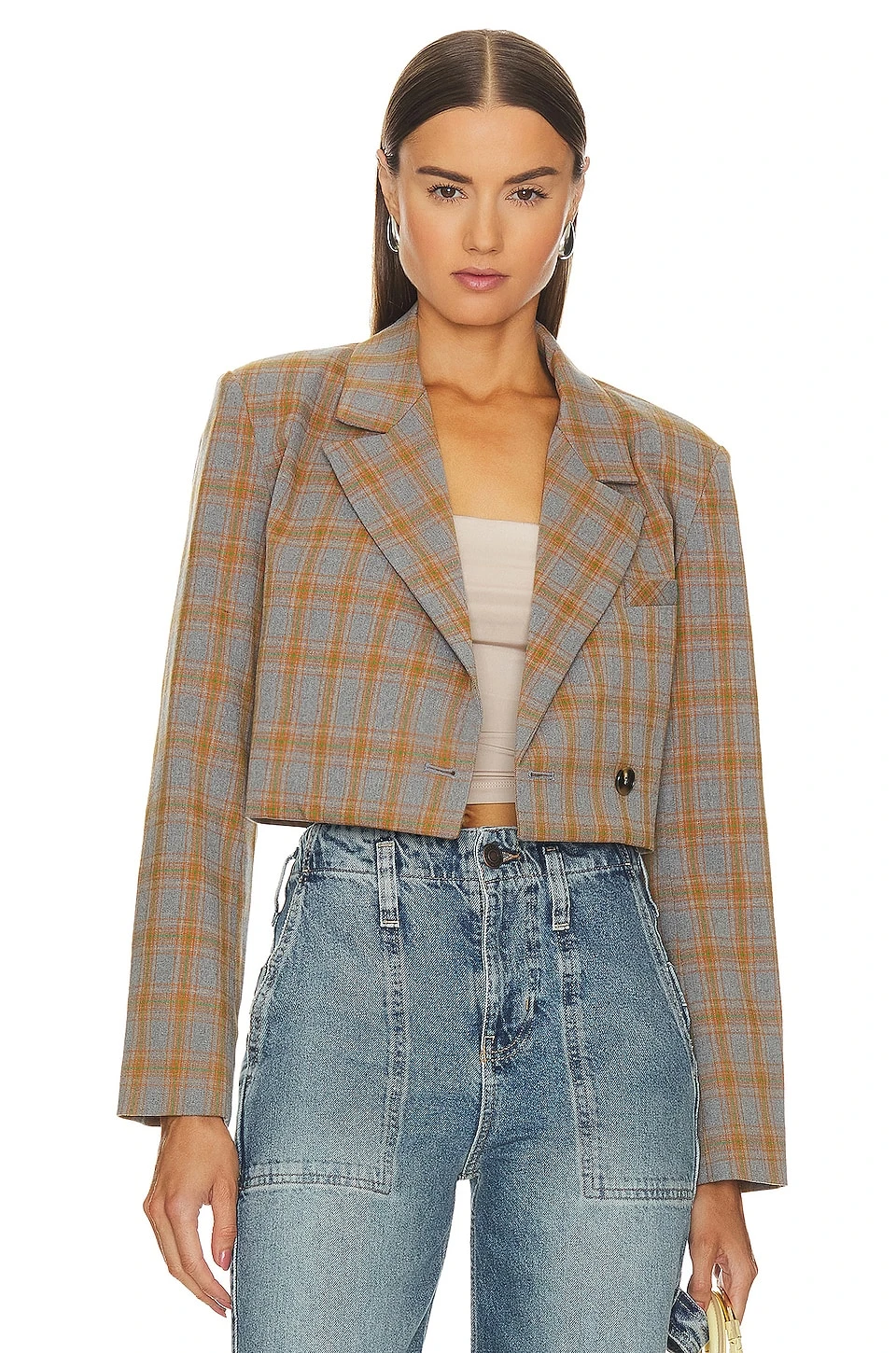 Steve Madden Rupi Cropped Blazer Grey Plaid