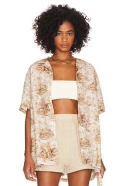 The Camp Shirt Taupe Tiger Scene