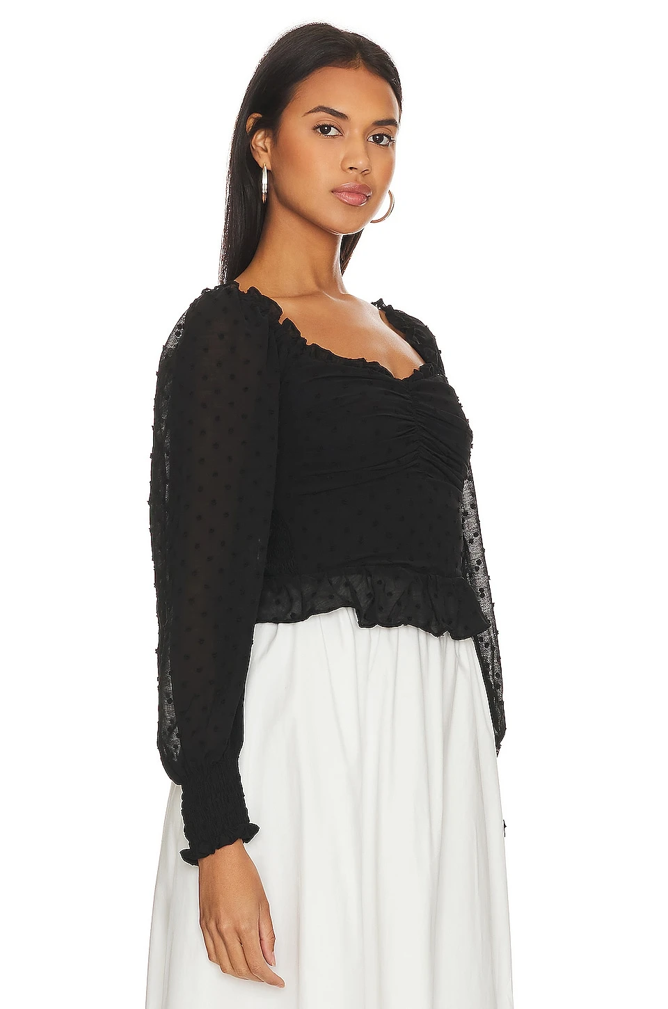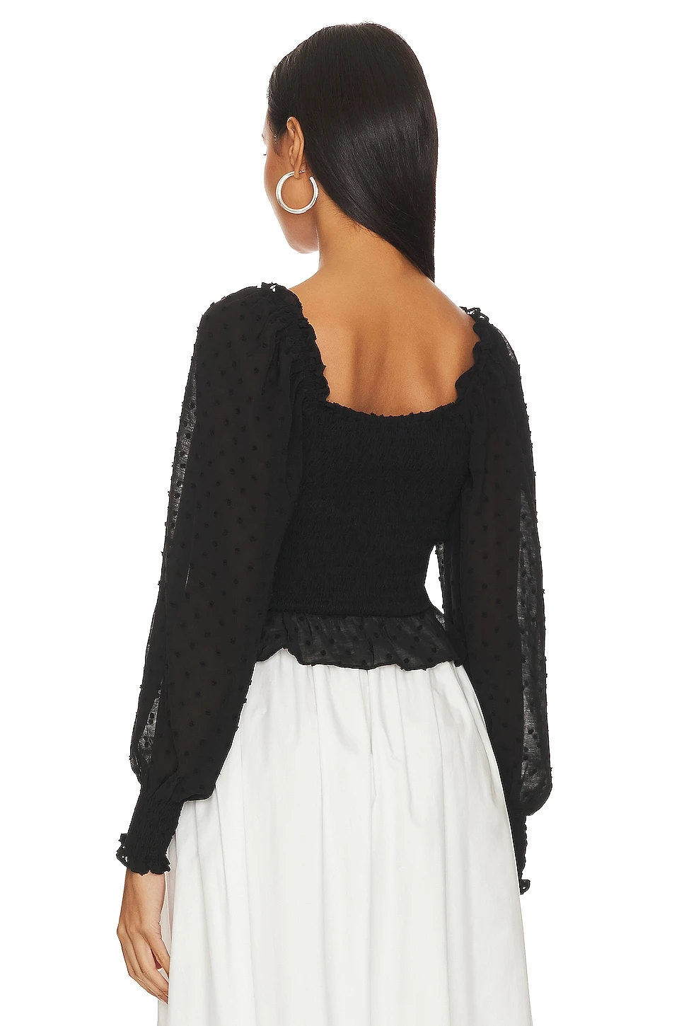 - Sheer puff sleeves with smocked cuffs
