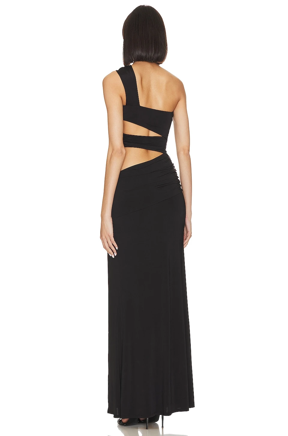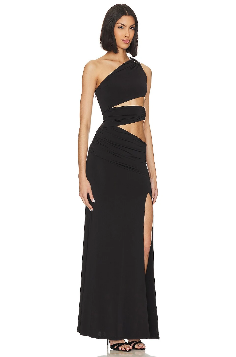 - Pull-on one shoulder styling with acrylic O-ring accent