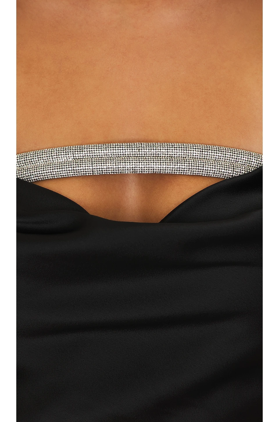 - Rhinestone embellished arch at bust